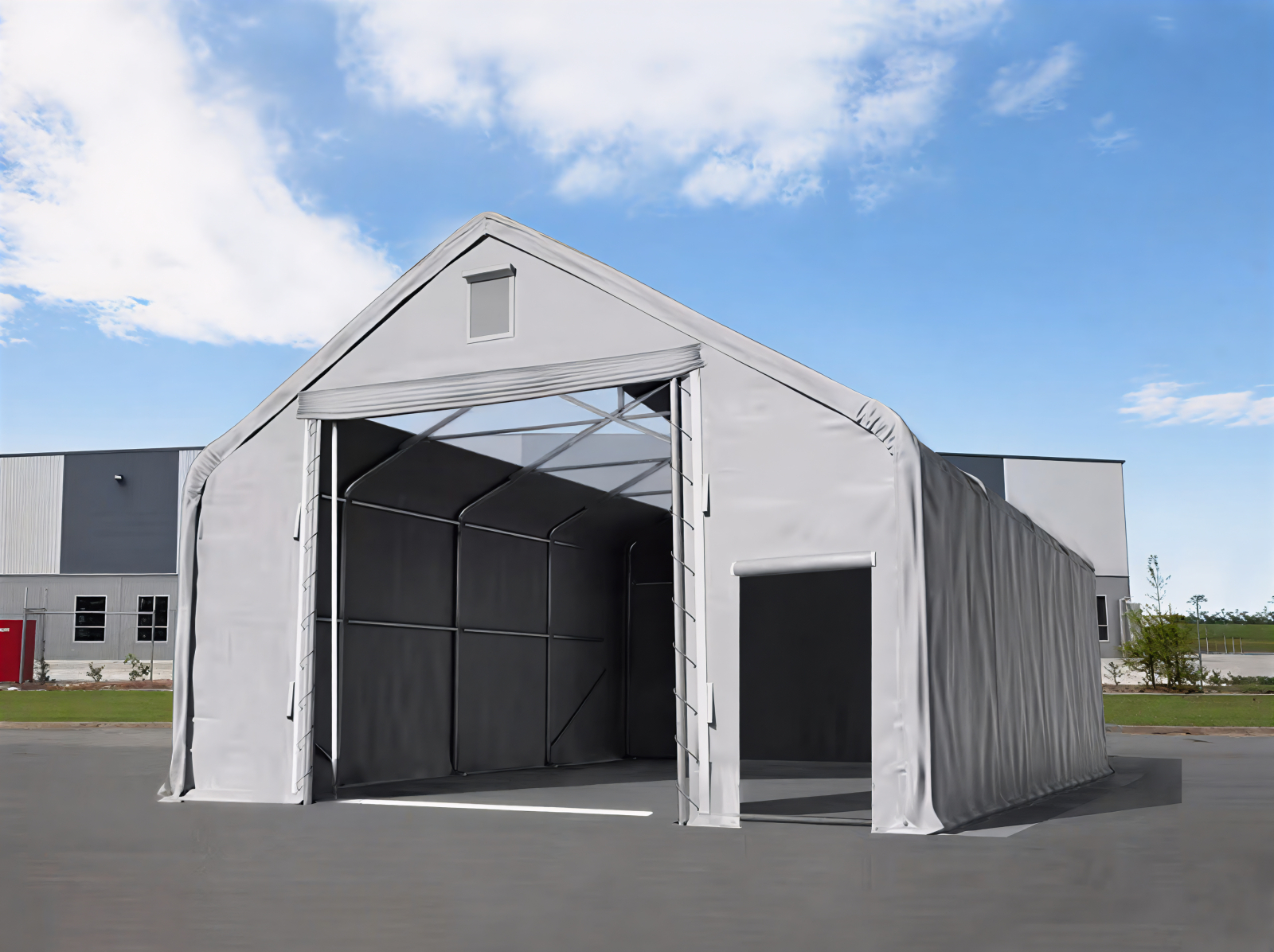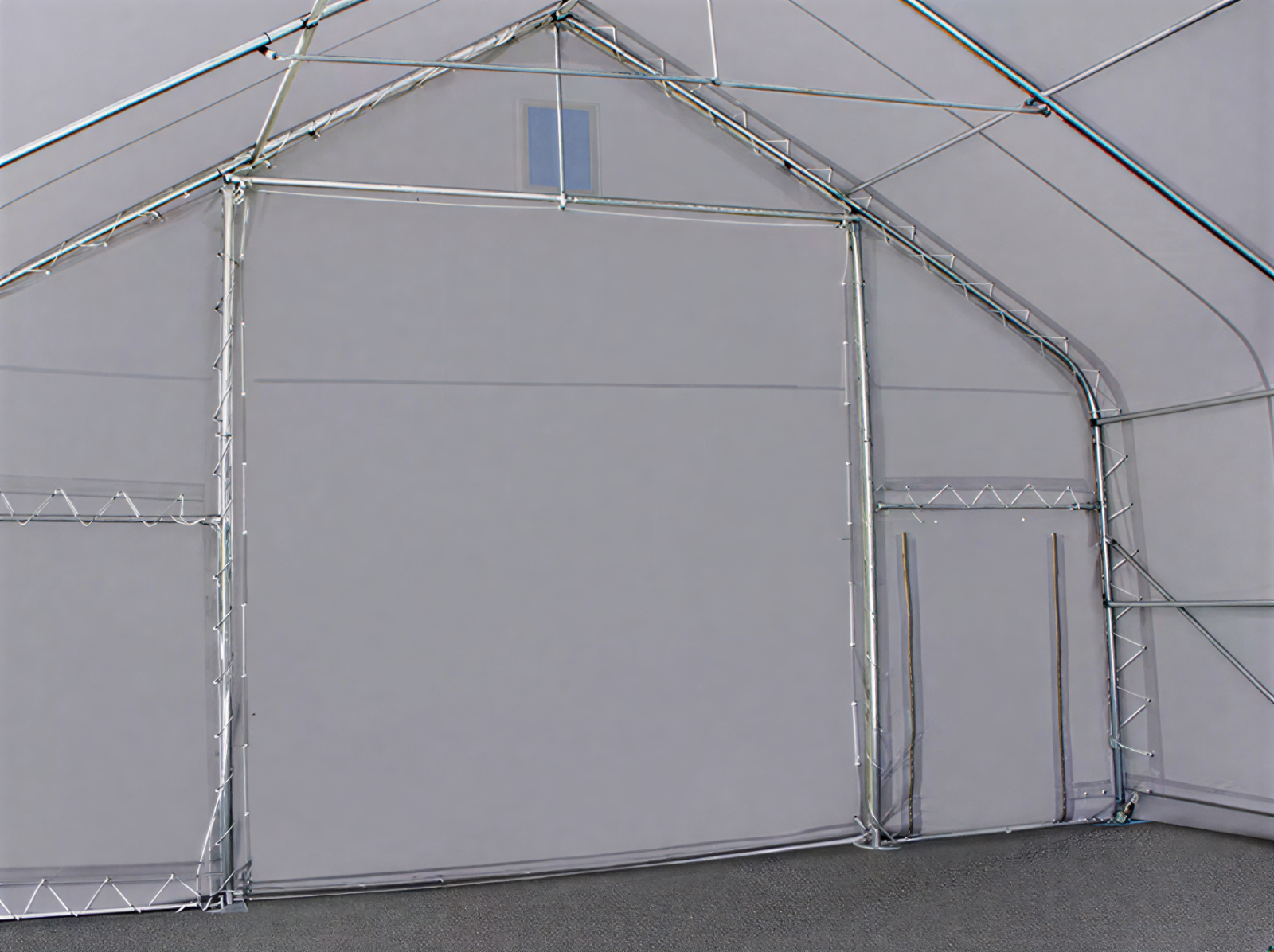 Acest cort industrial de dimensiuni generoase, 10 x 20 m, este soluția ideală pentru diverse aplicații comerciale și industriale. Construit pentru a rezista la condiții meteo variate, oferă un spațiu protejat și durabil pentru depozitare, evenimente, sau activități de producție.